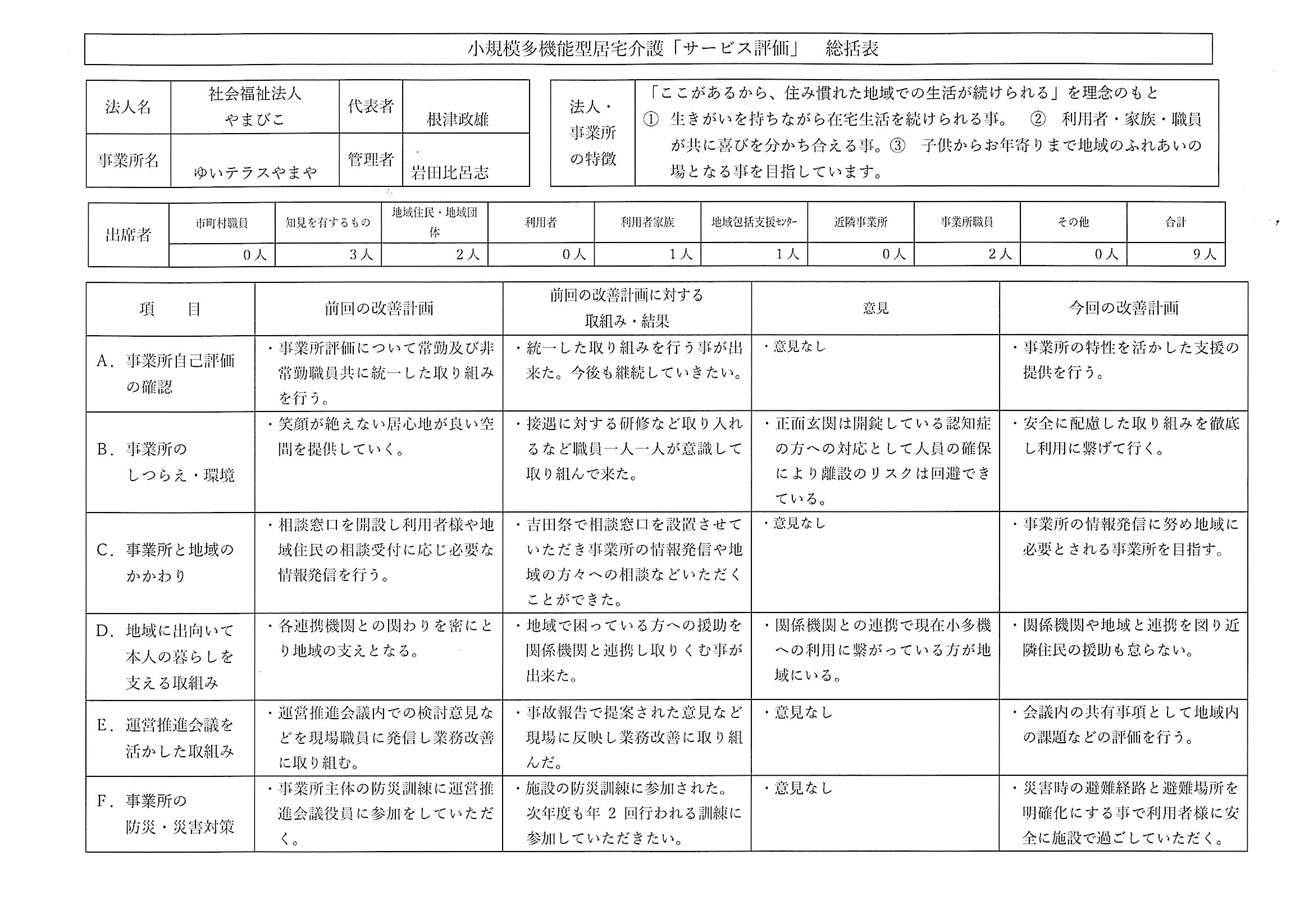 ゆいテラスやまや(小多機)サービス評価表について